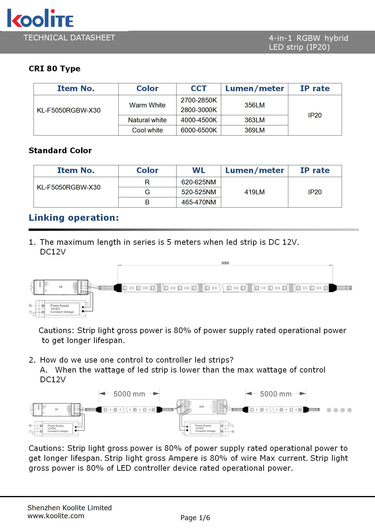 KL-F5050RGBW-X30(4-in-1 RGBW hydrid strip)